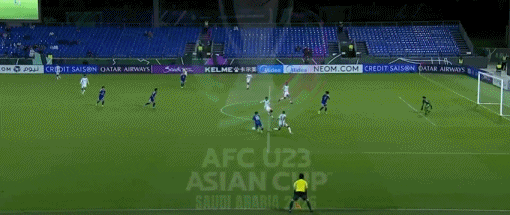 第80分钟,哈桑出球失误,佐藤龙之介低射破门,U23日本2-0卡塔尔U23