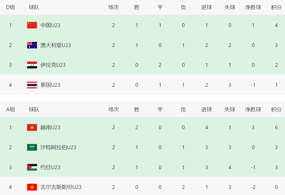 2026年U23亚洲杯小组赛第二轮全部结束,四个小组的积分排名出现有趣的一幕,就是排名小组第一的球队,全部来自东亚或者东南亚,西亚或者中亚全部没有,放在各个级别的亚洲杯也是十分少见。第二轮结束之后,各个小组最新积分榜:作为卫冕冠军,日本队这一次派出的队伍并非U23年龄段,而是U20年龄段,...